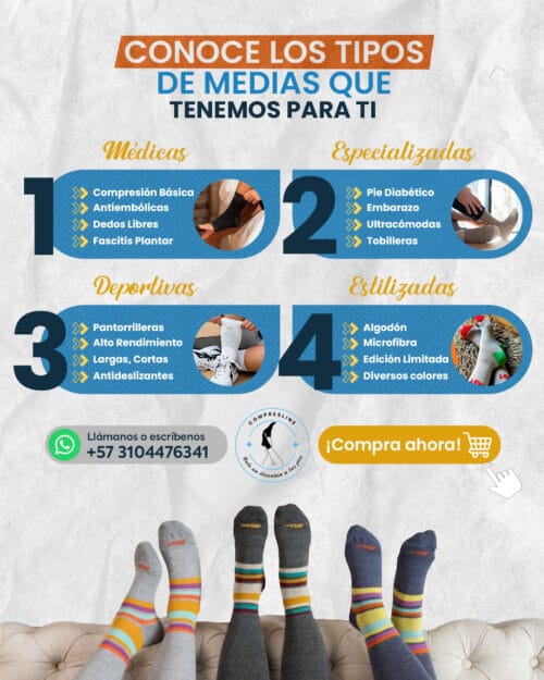 Compres Line es una línea de medias de compresión enfocada en mejorar la salud y el bienestar de sus usuarios. Sus productos están diseñados para atender necesidades específicas de personas con condiciones como diabetes, mujeres en estado de embarazo, así como clientes que buscan mejorar la circulación y prevenir problemas venosos. Además de atender al consumidor final, la marca ofrece ventas al por mayor y distribución para mayoristas, posicionándose como un proveedor confiable en el sector salud y bienestar.