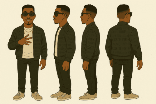 Para la producción, se solicitaron fotografías de referencia tanto del artista como de la modelo que protagonizarían la historia. A partir de estas referencias se crearon model sheets que garantizaron la coherencia visual de los personajes a lo largo de todo el video. El proyecto incluyó el desarrollo de una narrativa romántica y tropical, plasmada en un storyboard que organizó la trama y las escenas clave.